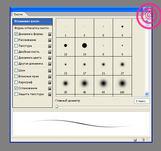4. Жмём на треугольник и выбираем строку – Загрузить кисти…