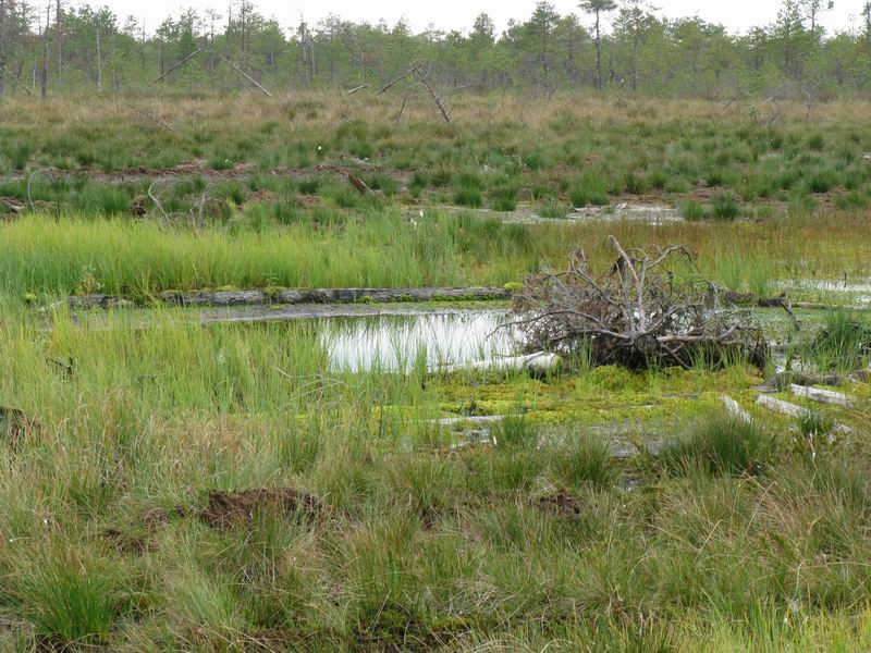 "Мокрое" болото на середине пути. Относительно сухое место для привала пришлось поискать.