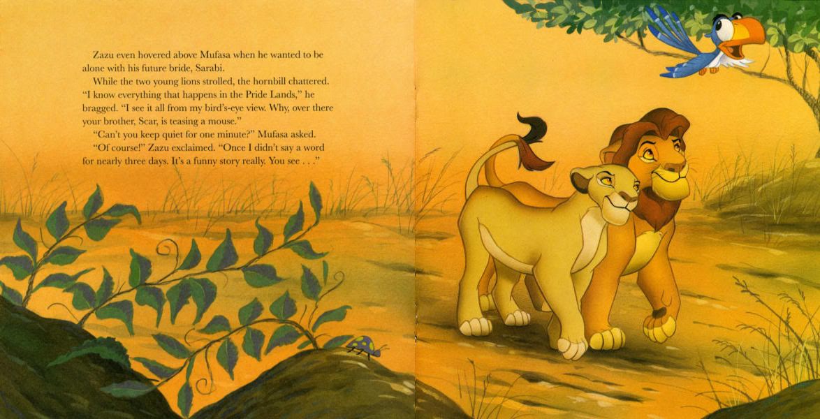 «The Lion King: Friends in Need» — книга, основанная на мультфильме «Король Лев». Она рассказывает о том, как Муфаса встретил Зазу, который спас жизнь Сараби и стал королевским мажордомом.