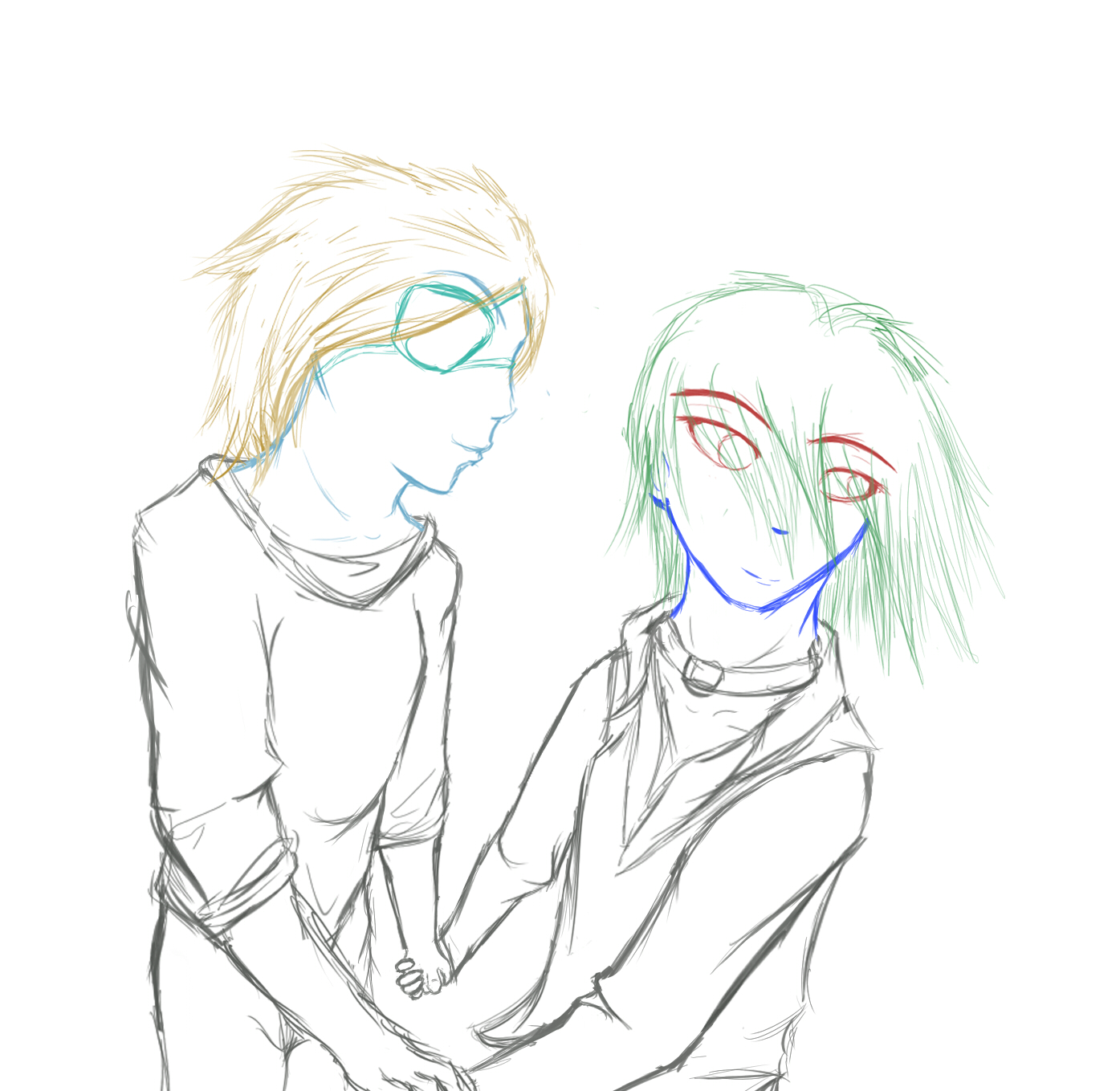 Этот набросок - подарок одной замечательной художнице. Изначально он был воистину ужасен, но я исправила всё, что могла. Но мне всё равно не нравится :( Особенно руки, я не знаю, как их нормально нарисовать... Перспективы вообще изначально не было, но после многочисленных правок она появилась :shock: В общем, вот: