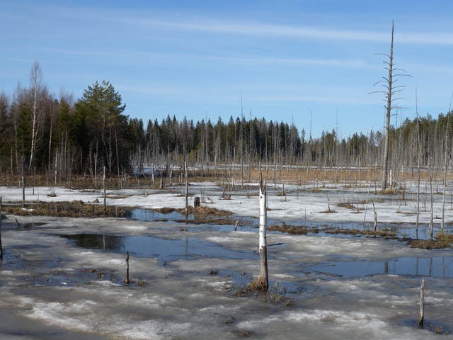 На следующий день отогревались (бедный Алекс, спавший без спальника в свитерах, совсем замерз под утро), сушились (Алекс жег, жертвой пали мои штаны), благо дождя не было, и клеили дыру. За это время мимо этой коряги (бобры – сволочи!) проплыла «Щука» и надувная лодка, которая никак не проходила по ширине, и один из парней топориком отрубил приличный кусок коряги. Мы им отчаянно завидовали. У экипажа «Щуки» пытались попросить наждачку для зачистки шкуры (не оказалось) и узнать, где мы находимся (наши карты на тот момент больше напоминали абстрактную живопись). Они это сами знали только приблизительно, зато рассказали, где можно закончить маршрут, потому что все расстояние мы бы вряд ли успели пройти без дополнительного экстрима в виде очень ранней побудки.