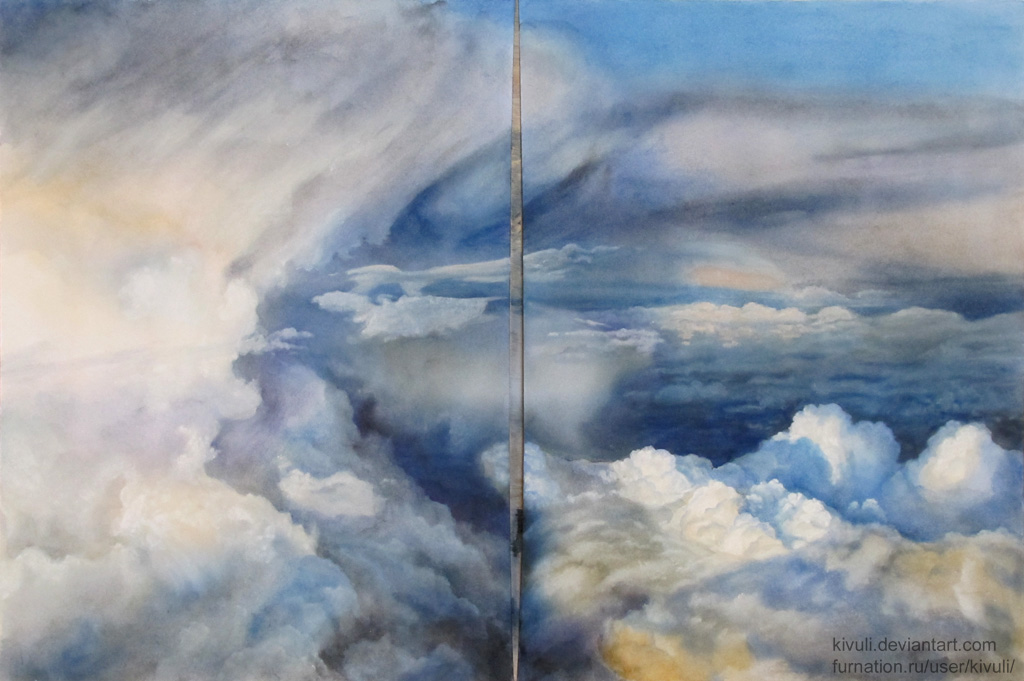 Летающую живность буду дорисовывать уже в цифре, в зависимости от того, какую часть примут на календарь (если работ будет не хватать, можно и на обеих).