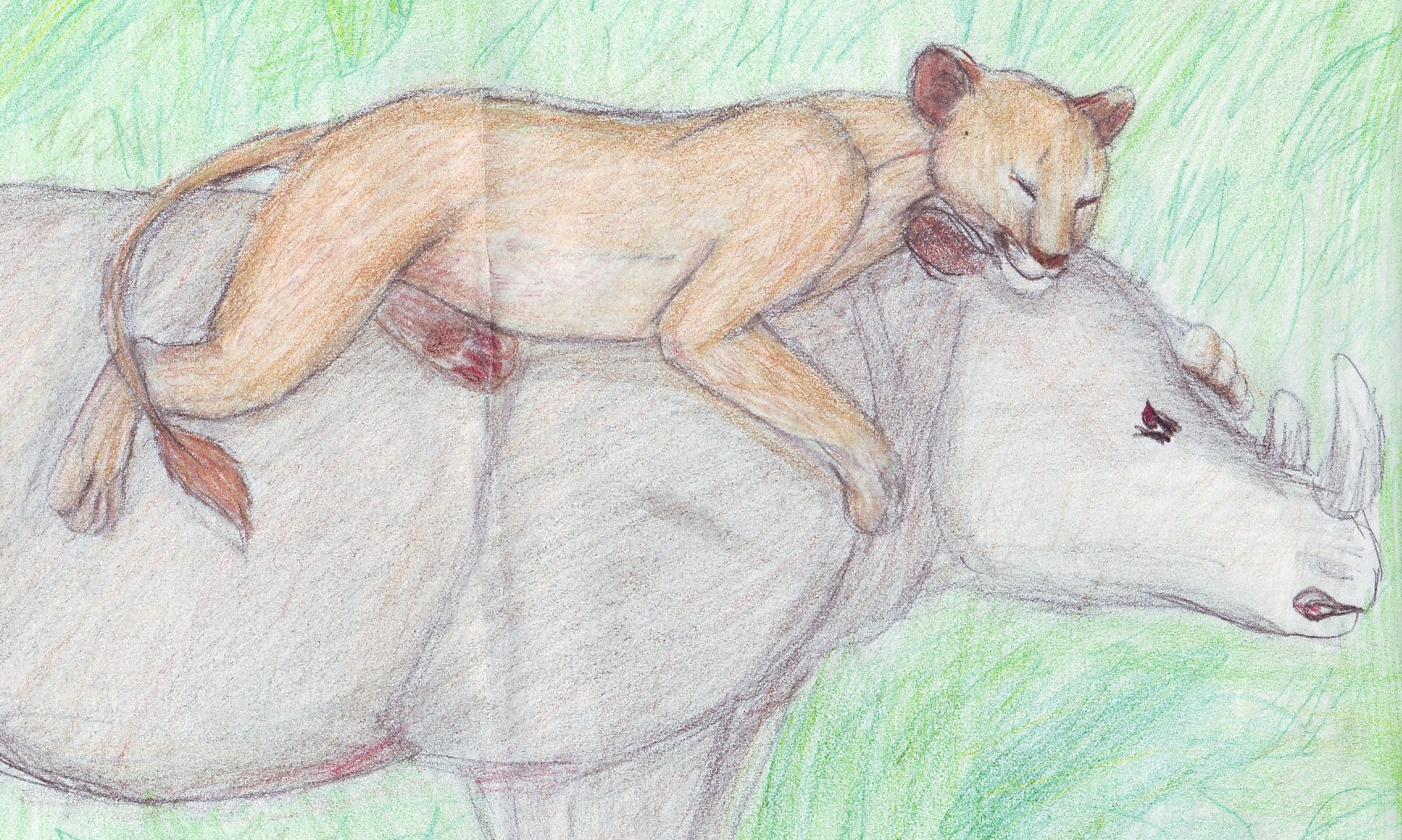 2 Безумие сюжета второй картинки в чем-то оправдывает ее незаконченность, но все-таки львица должна соскользнуть направо ;) . Если бы ни это, я бы не заметил мелких недочетов (недоработок) типа рта носорога и копыта вместо лапы.