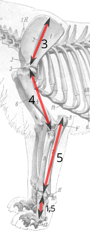 Кажется, что у персонажа лишняя кость в передней лапе из-за выраженного угла на выступающей части лопатки; судя по атласу анатомии (см. выше), выступающая часть лопатки должна быть скруглённой.