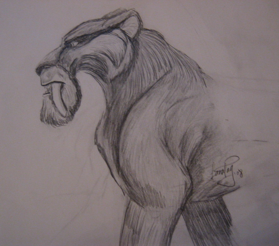 Начинаю жаловаться: у меня опять сдох сканер. И вообще! пока у меня получится эта клыкастая морда, я рисовать научусь! :)))