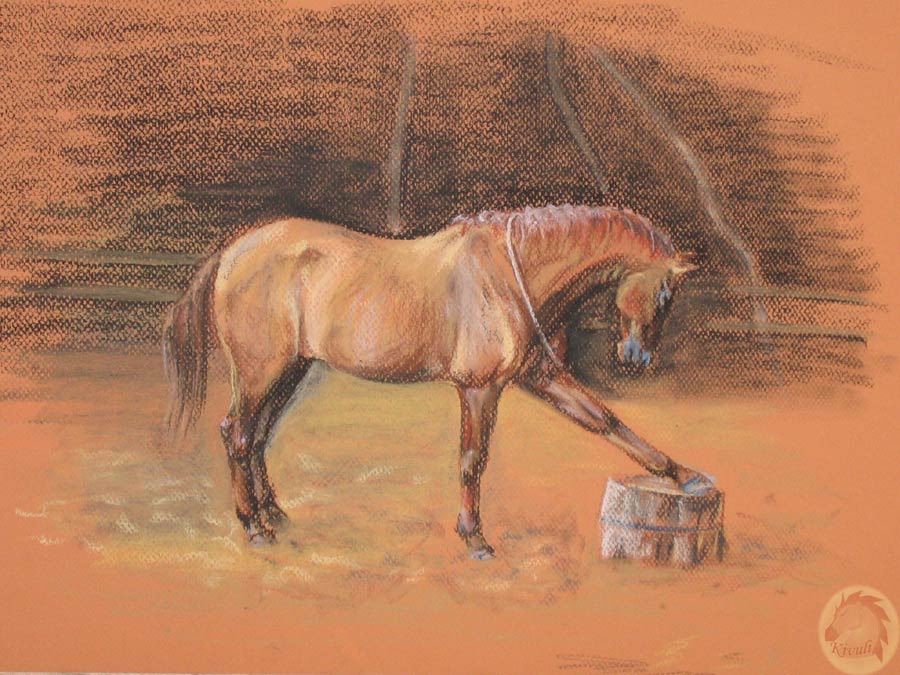 Лошадь была обведена(!) в фотошопе, потом развернута боком, а не задом, переставила и подправила ей ноги, исправила шею, подредактировала спину, гриву с хвостом нарисовала заново (оригинал, как всегда, качеством не отличался