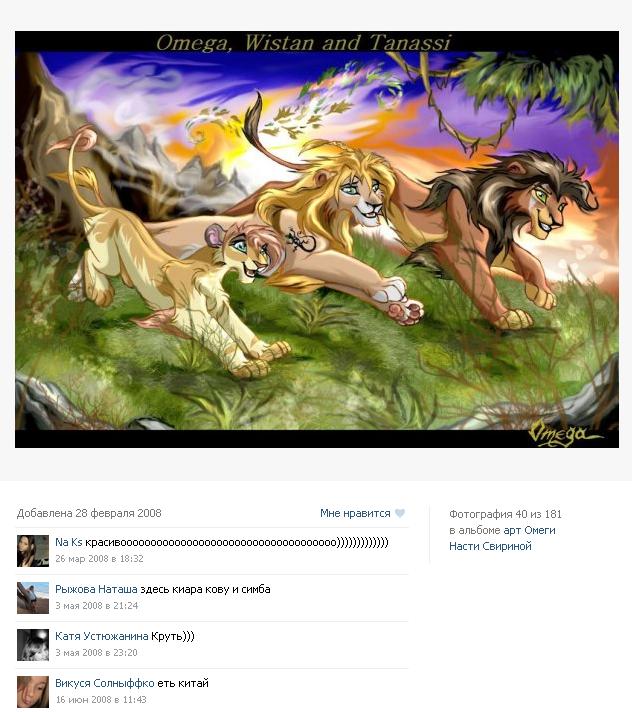 Ага) А меня убили "Киара, Симба и Кову" тоже с арта Омеги. Не, ладно, Танасси можно было незнающему спутать с Кову, но уж Киару-то, а, тем более, Симбу, где они нашли?Rain писал(а):"девка из Хроник" с Омежкиного арта убила наповал))))))))))