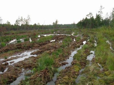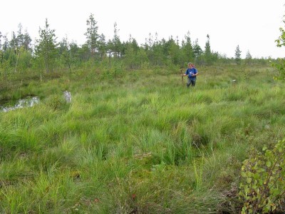 "Мокрое" болото на середине пути. Относительно сухое место для привала пришлось поискать.