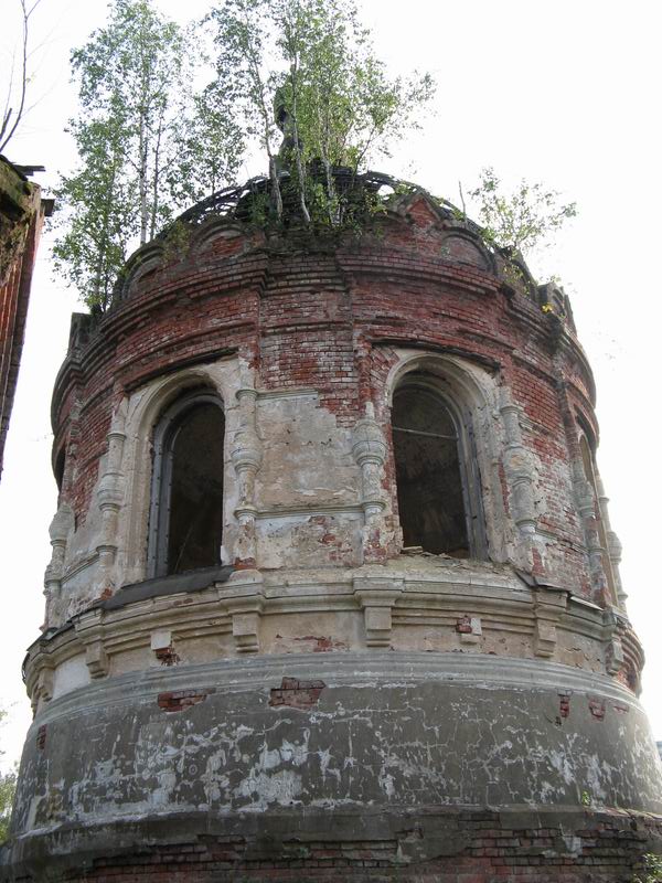 Заросшая крыша с упавшим куполом. Состояние кладки разглядеть невозможно, поэтому решили там особо не ходить - падать высоко