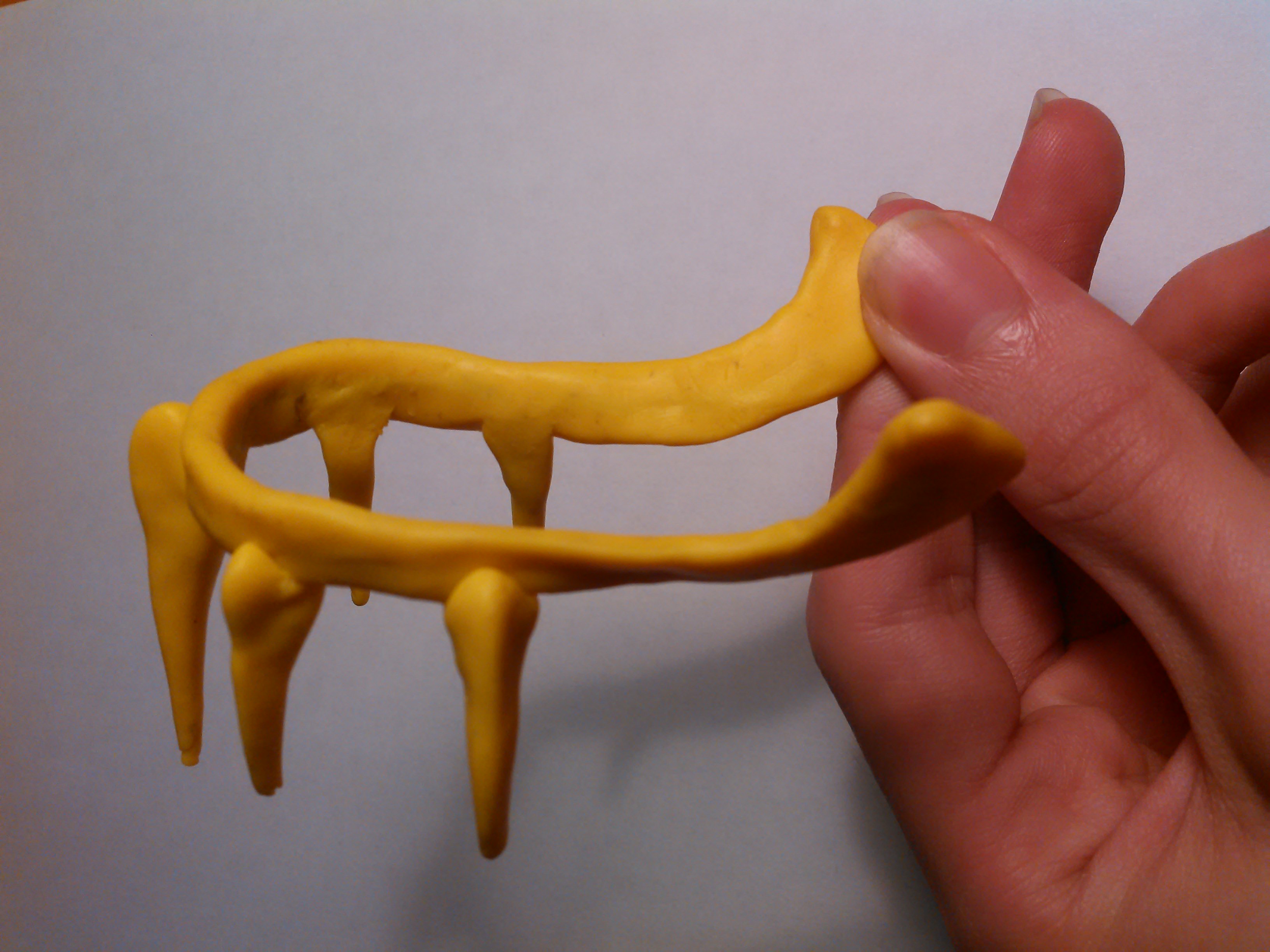 Верхний зубец должен был быть изогнут больше, и симметрию я всё же завалил, но в целом неплохо для первого блина. Материал мне понравился - работать с ним почти так же просто, как с пластилином, и он идёт уже пигментированным, так что не надо потом изощряться с покраской. (До этого я работал только с пластилином, из-за чего от некоторых скульптур сохранились только фотографии.) Постараюсь закупить больше цветов и использовать эту штуку вместо пластилина.