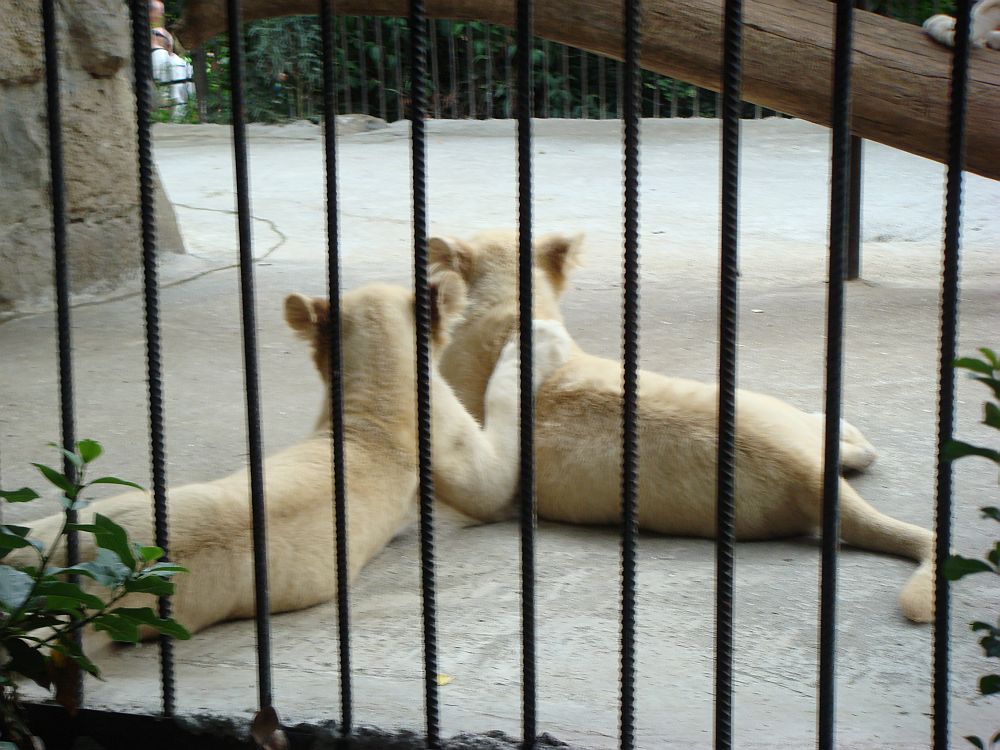 Слишком яркий солнечный свет был. Но те львята точно белые, даже на клетке было написано.