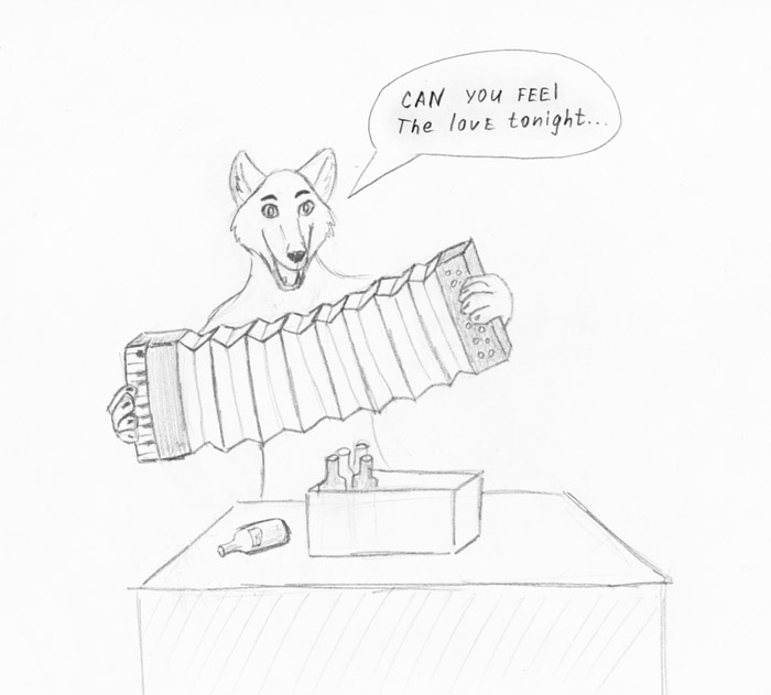 Этот рисунок уже не по фурьке, но косвенно.... Неш принес кучу музыки из Енотов, за что был радостно затискан и затоптан