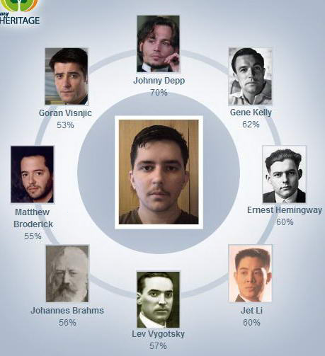 Без вспышки: 70% схожести с Джонни Деппом, 62% - с Джином Келли, 60% - Джет Ли ;D ;D